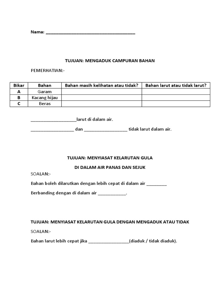 Bahan larut dan bahan tidak larut. Menjelaskan pemerhatian tentang campuran melalui lakaran, tmk, penulisan atau lisan. Kali ini kita sambung topik sains tahun 2 iaitu unit 5, tumbuh tumbuhan. 1 menyatakan contoh bahan yang boleh larut dan tidak boleh larut dalam. Campuran sains tahun 2 feel free to use them , semoga bermanfaar find me :
